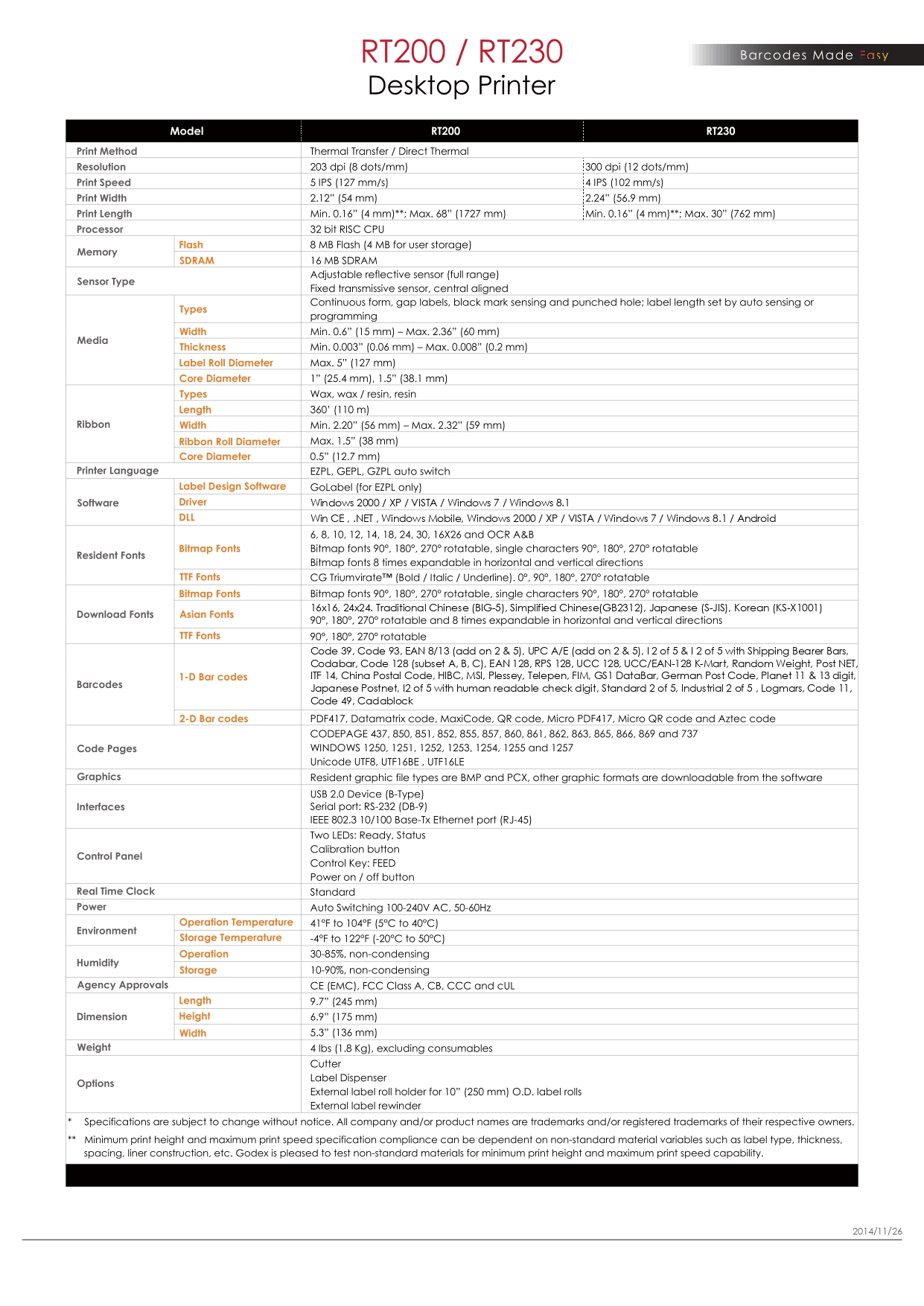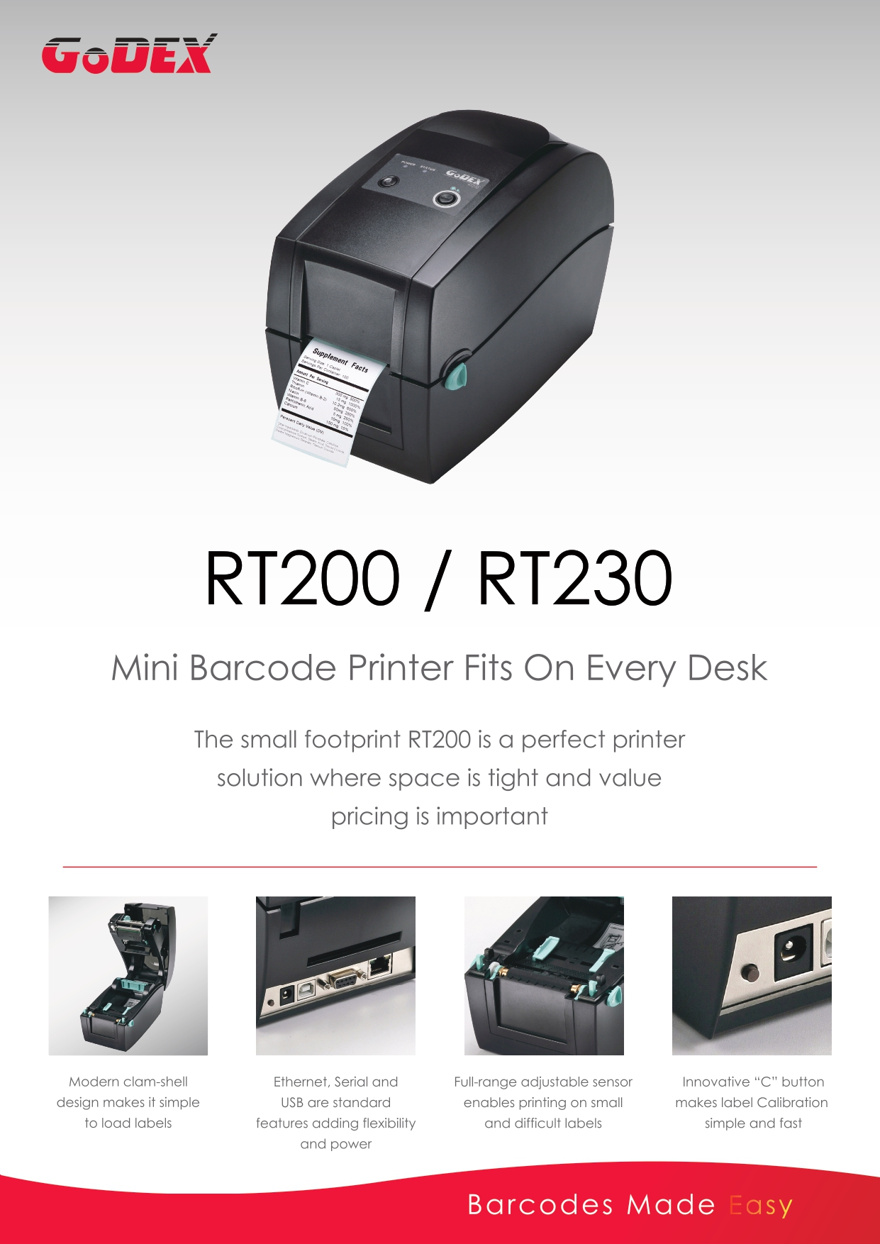 작은 설치 공간 RT200은 공간이 협소하고 가치 있는 가격이 중요한 완벽한 프린터 솔루션입니다.