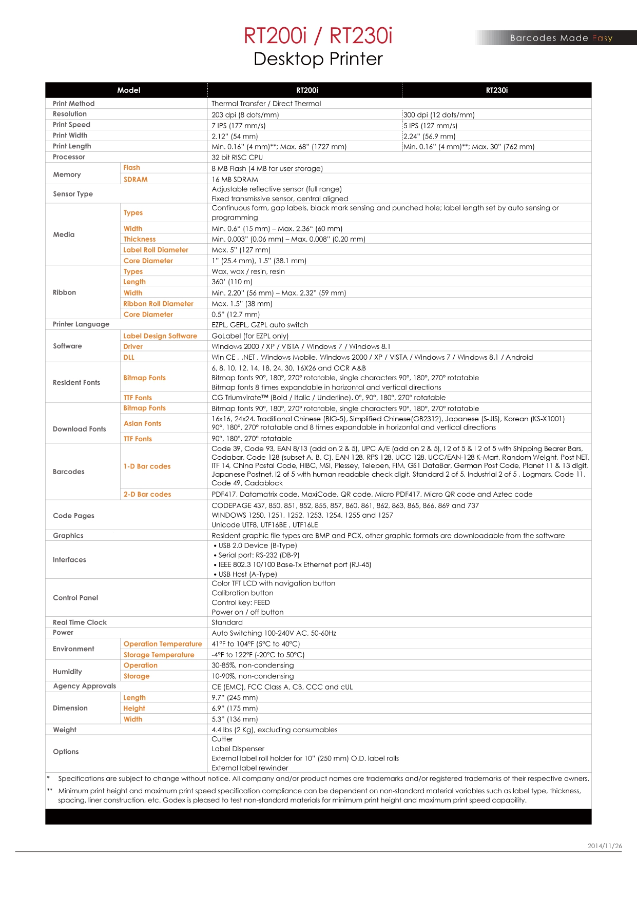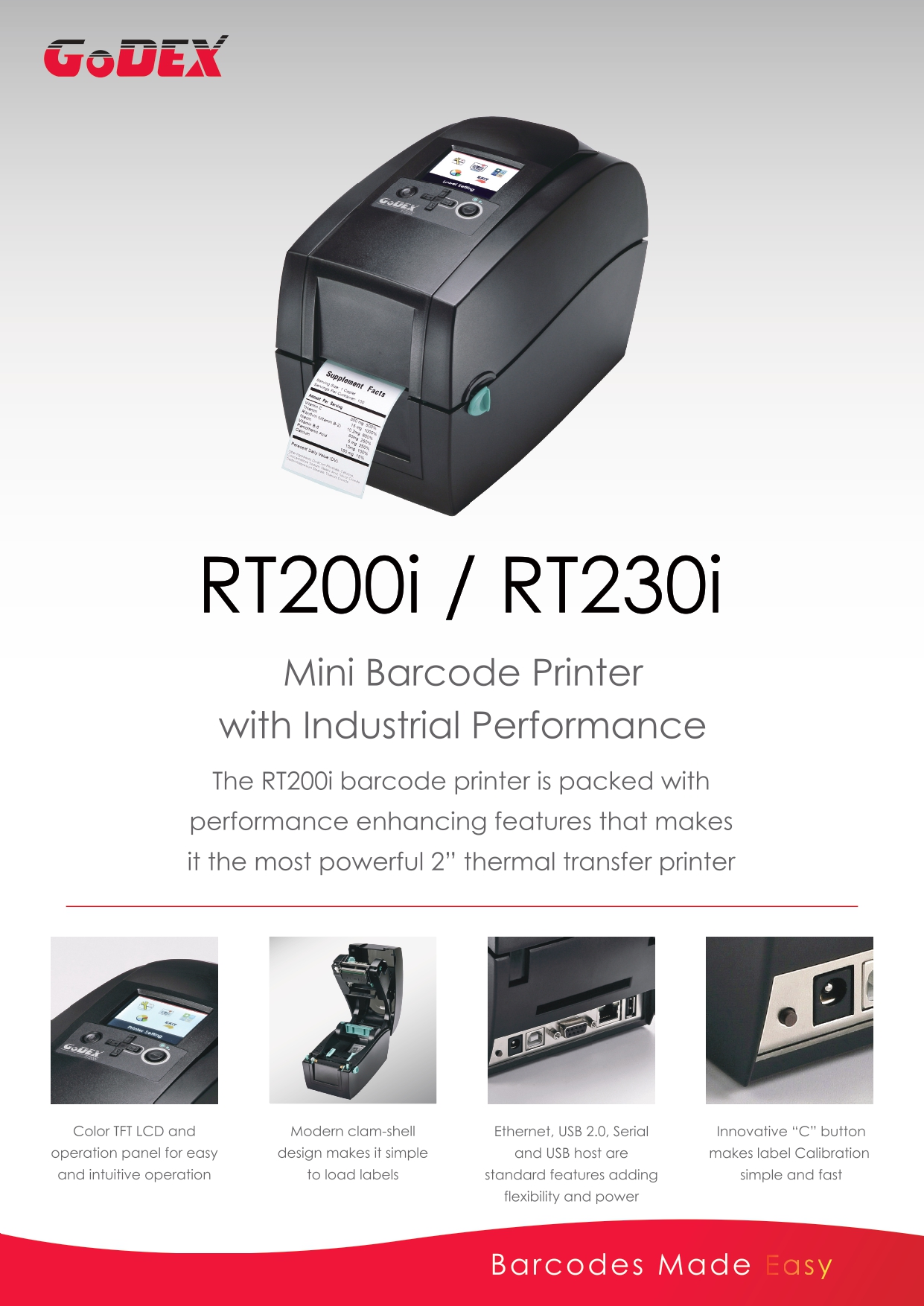 RT200i 바코드 프린터는 가장 강력한 2인치 열전사 프린터가 되는 성능 향상 기능으로 가득 차 있습니다.